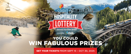 [Vancouver, BC] The BC Hospitality Foundation (BCHF) proudly announces the launch of the 7th Annual Spirit of Hospitality Lottery, running from September 15 to October 30, 2025. Sponsored by the Hotel Association of Vancouver and CHEK News, this year’s lottery aims to raise $65,000 to help hospitality and tourism workers across the province who are facing financial crises due to health challenges.